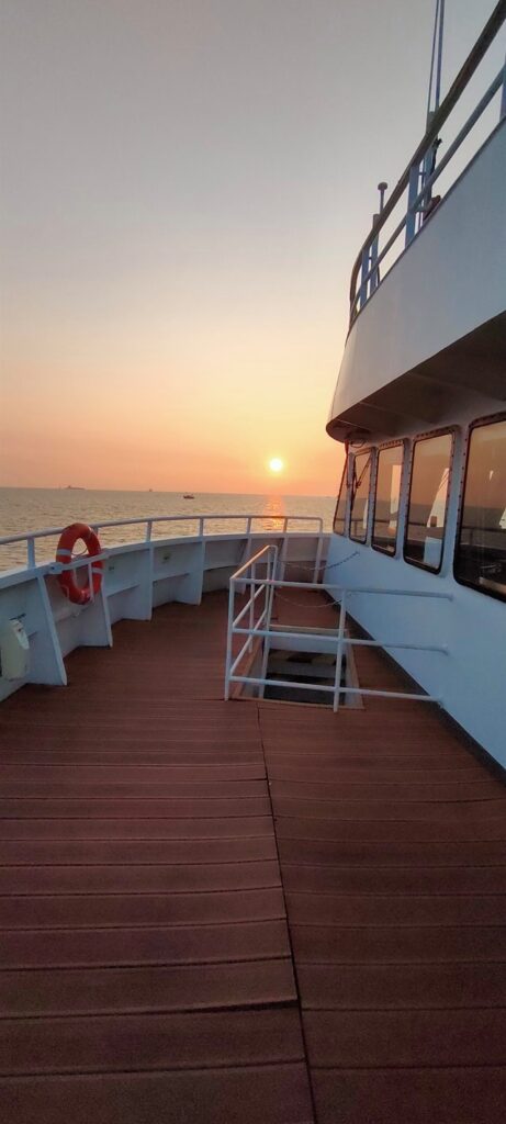 കപ്പൽ ഹോൺ മുഴക്കി നേരെ മടക്കയാത്ര. സൺഡെക്കിൽ പാട്ടും ഡാൻസുമൊക്കെയായി മുതിർന്നവരും കുട്ടികളും. അപ്പോഴേക്കും കപ്പലിന്റെ ഉലച്ചിൽ ഒക്കെ പലർക്കും നിസ്സാരമായി തുടങ്ങിയിരുന്നു.