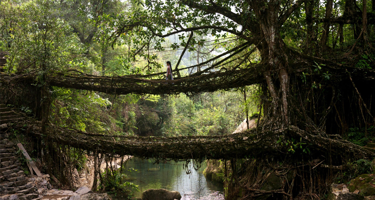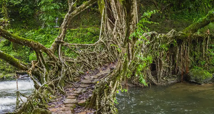 മേഖലയിലെ ഒരുപാട് ഇടങ്ങളിൽ ജീവനുള്ള ബ്രിഡ്ജ് കാണാൻ സാധിക്കും. ജീവനുള്ള വേരുകൾ കൊണ്ട് നിർമിച്ച പാലങ്ങൾ സഞ്ചാരികൾക്ക് എന്നും കൗതുകം നിറഞ്ഞതായിരിക്കും. അതിൽ ഏറ്റവും പ്രശസ്തമായ വേരുകൊണ്ടുള്ള പാലമാണ് റിറ്റിമൻ ലിവിങ് റൂട്ട് ബ്രിഡ്ജ്. ചിറാപുഞ്ചിയിൽ നിന്ന് 12 km അകലെയുള്ള ടൈഡ്ന ഗ്രാമത്തിൽ നിന്നാണ് റെറ്റിമൻ റൂട്ട് ബ്രിഡ്ജിലേക്കുള്ള വഴി. പോകുന്ന വഴിയിൽ തന്നെ പാറക്കെട്ടുകളുടെ ഇടയിലൂടെയുള്ള ചെറുറോഡുകളിലൂടെയുള്ള യാത്ര ഏറെ കൗതുകം നിറഞ്ഞതാണ്.