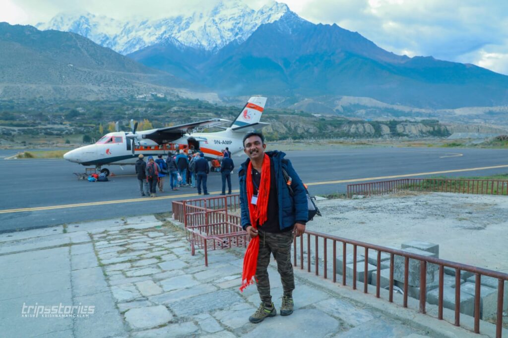 തിരുവനന്തപുരത്ത് നിന്നും പുറപ്പെടുന്ന രപ്തി സാഗർ എക്സ്പ്രസിൽ, ഉത്തർ പ്രദേശിലെ ഗോരഖ് പൂരിലെത്തി അവിടെ നിന്നും പോഖ്റ വരെ ബസിലാണ് ഞങ്ങൾ യാത്ര ചെയ്തത്. ഹിമാലയത്തിന്റെ മുകളിലൂടെയുള്ള അകാശയാത്ര ആസ്വദിക്കുന്നതിനായി പോഖ്രയിൽ നിന്നും ജോംസമിലേക്ക് വിമാന മാർഗ്ഗം പോകുവാനും തീരുമാനിച്ചു. കിഴക്കേടം മുരളീധരൻ നമ്പൂതിരിയുടെ നേതൃത്വത്തിൽ ഭഗവത് സ്മൃതി എന്ന അദ്ധ്യാത്മിക കൂട്ടായ്മ സംഘടിപ്പിച്ച ‘നേപ്പാൾ ദർശൻ” എന്ന യാത്രാ പരിപാടിയുടെ ഭാഗമായാണ് ഞാനും ഫോട്ടോഗ്രാഫറായ ബിജു ഭാവച്ചിത്രയും ഈ യാത്രയിൽ പങ്കെടുത്തത്.