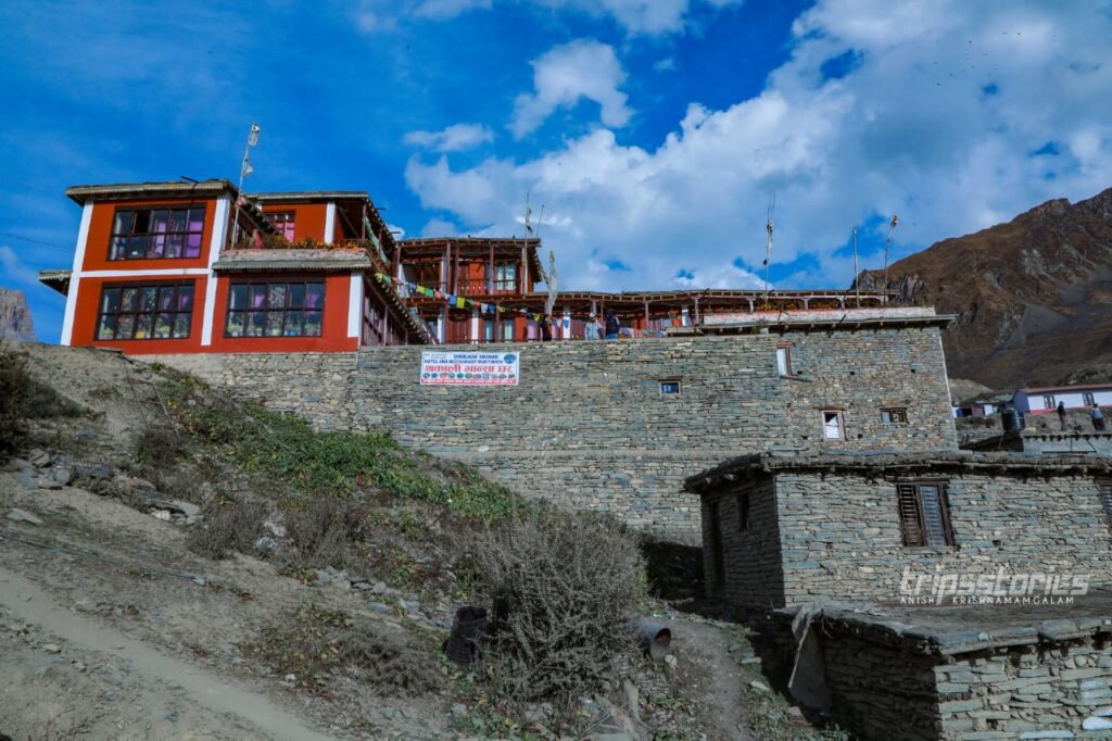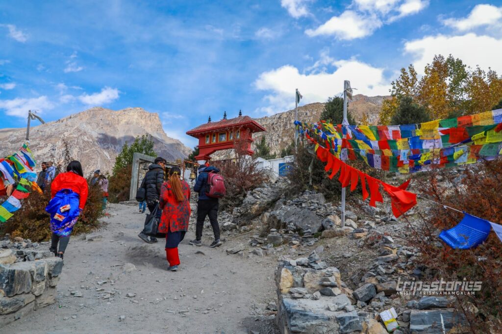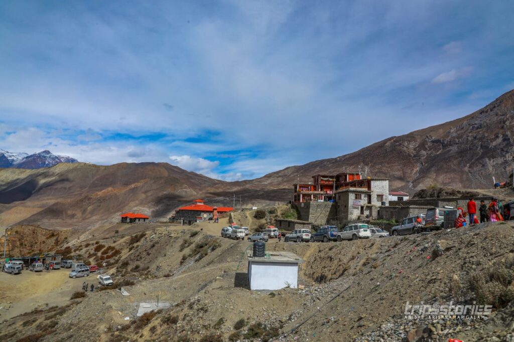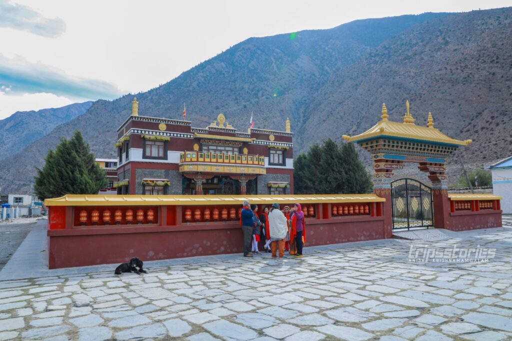 പുഴയുടെ മറുകരയിൽ “ദിസോങ് സോമ്പ” എന്ന ബുദ്ധ വിഹാരത്തിനോട് ചേർന്ന ഹോട്ടലിലാണ് ഞങ്ങൾക്ക് താമസം ഏർപ്പാട് ചെയ്തിരുന്നത്. അമ്മയും രണ്ട് മക്കളുമാണ് നടത്തിപ്പുകാർ. വലിയ വൃത്തിയോ സൗമ്യമായ പെരുമാറ്റമോ ഒന്നും അവിടെ കാണാൻ കഴിഞ്ഞില്ല. ഭക്ഷണം പോലും നെപ്പാളികൾ വന്നാൽ അവർക്ക് കൊടുത്തിട്ട് മാത്രമെ ഇന്ത്യക്കാർക്ക് നൽകൂ. അത്തരം മനോഭാവം എല്ലാവർക്കും അല്പം മന:പ്രയാസം ഉണ്ടാക്കുകയും ചെയ്തു. അന്നാട്ടുകാരെ പിണക്കാതെ ബിസിനെസ്സ് നടത്താൻ ചിലപ്പോൾ അങ്ങിനെയൊക്കെ വേണ്ടി വരുന്നതാവാം. പ്രഭാത ഭക്ഷണമായി ചപ്പാത്തിയും ദാലും കഴിച്ചു കൊണ്ടിരിക്കെ മുക്തിനാഥിലേക്ക് പോകുവാനുള്ള മിനിബിസ് എത്തിച്ചേർന്നു.