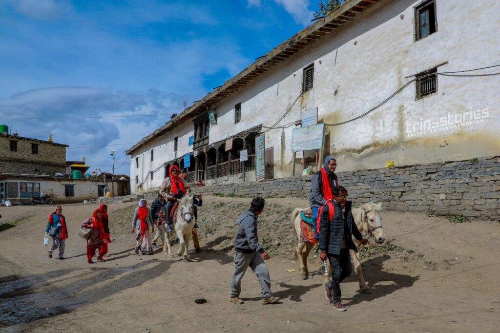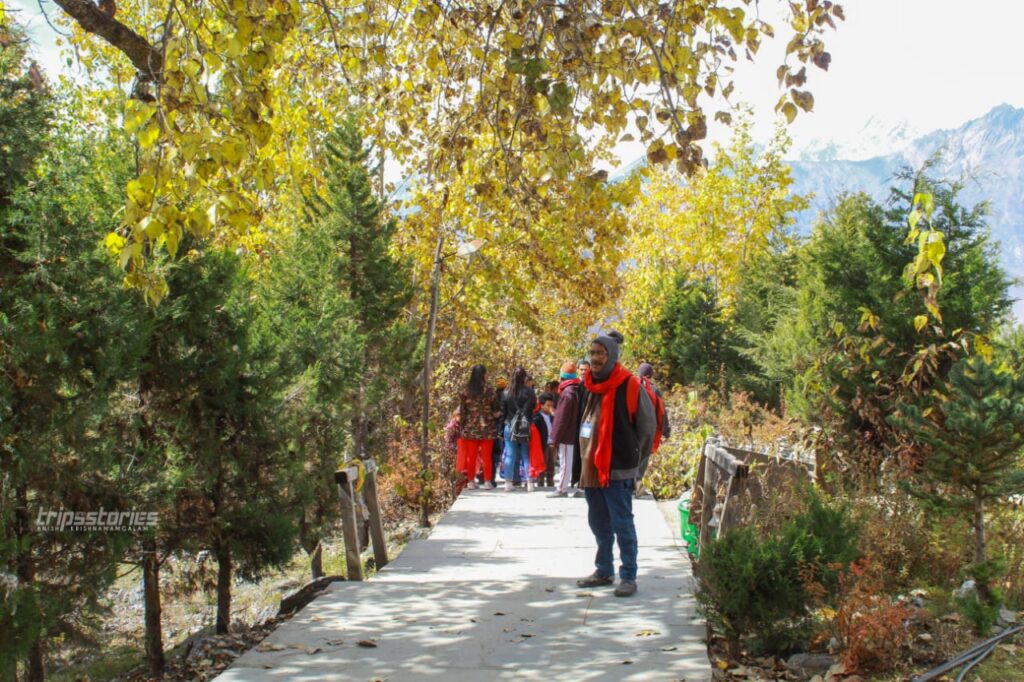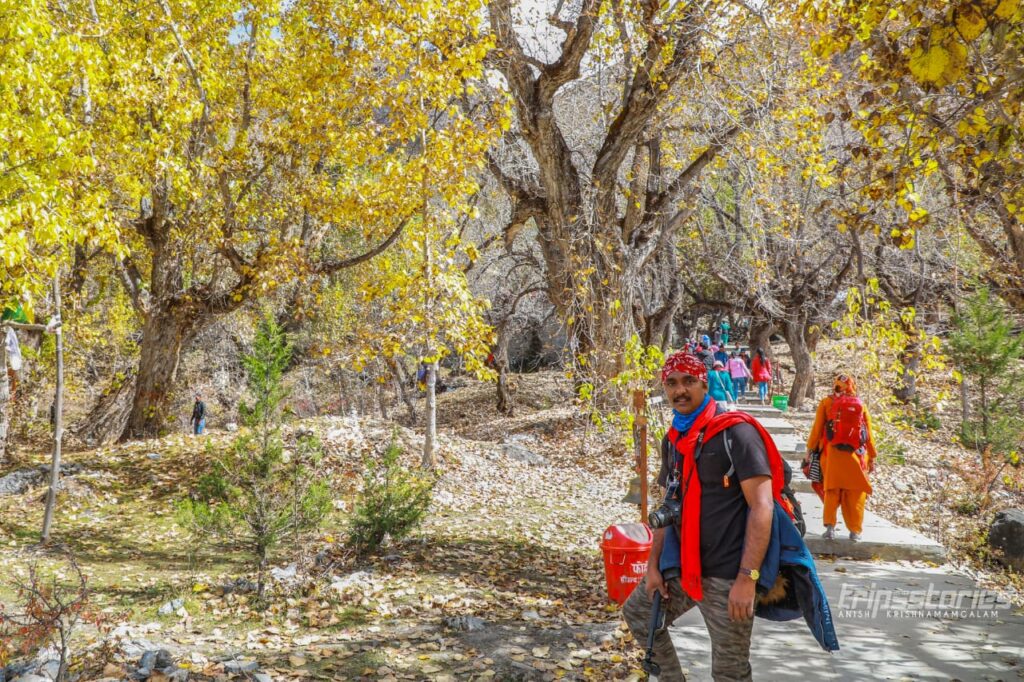 സ്വർണ്ണവർണ്ണമണിഞ്ഞ് ഇല പൊഴിക്കറായി നിൽക്കുന്ന മരങ്ങൾ നിറഞ്ഞ കിംഖർ ഗ്രാമം പിന്നിട്ട് “രാനിപൗവ്വ” യിൽ ബസ് യാത്ര അവസാനിച്ചു. വാഹനത്തിൽ നിന്നും ഇറങ്ങിയപ്പോഴേക്കും കുതിരക്കാരും പോർട്ടർമാരും മുകളിലേക്കുള്ള വഴിയുടെ കഠിന്യത്തെപ്പറ്റി പറഞ്ഞ് കൊണ്ട് ചുറ്റും കൂടി. വീശിയടിക്കുന്ന പൊടിക്കാറ്റിൽ നിന്നും ചെവിയും കണ്ണും സംരക്ഷിക്കുവാൻ തുണി കൊണ്ട് മൂടികെട്ടി. കുതിരപ്പുറത്ത് കയറിയവർ മുന്നിൽ പോയതോടെ ഞങ്ങള് മെല്ലെ മല കയറാൻ തുടങ്ങി. വഴിയരികിലെല്ലാം കമ്പിളിതൊപ്പിയും കൈയുറയും പഴവർഗ്ഗങ്ങളും ഒക്കെയായി ഗ്രാമീണർ പ്രതീക്ഷയോടെ ഇരിക്കുന്നു.