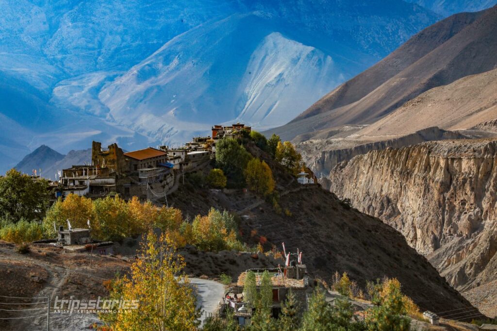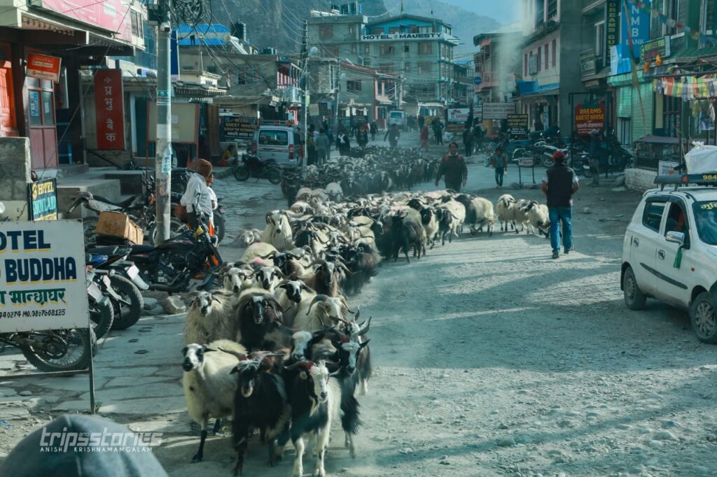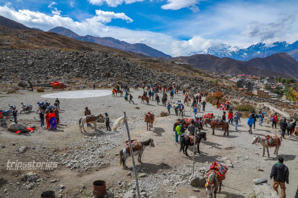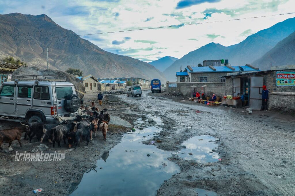 ആദ്യകാഴ്ചയിൽ തന്നെ ഇൗ ഹിമാലയഗ്രാമം നമ്മുടെ മനസ്സ് കവരും. ആധുനികത തെല്ലും വികൃതമാക്കാത്ത നൂറ്റാണ്ടുകൾ പഴക്കമുള്ള കെട്ടിടങ്ങളും വീടുകളും. റൺവേയിലോഴികെ ഒരിടത്തും ടാർ ചെയ്ത റോഡുകളില്ല. വെള്ളാരം കല്ലുകൾക്കിടയിലൂടെ തെളിനീരുമായി ഒഴുകുന്ന ഗണ്ടകി. അതിന്റെ ഇരുകരകളിലുമായി ജീവിതം കരു പിടിപ്പിക്കുന്ന ഹിമാലയമക്കൾ. ചൈനയോട് ചേർന്ന് കിടക്കുന്ന പ്രദേശമായതിനാൽ ടിബറ്റൻ ഛായയാണ് ആളുകൾക്ക്.