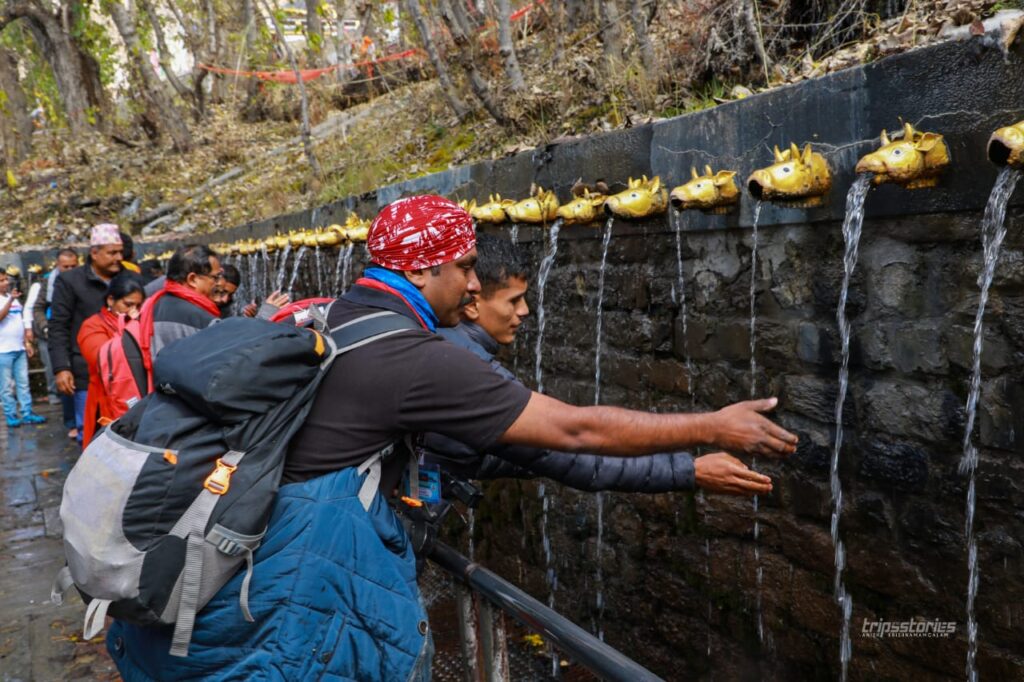 ഞങ്ങളുടെ സംഘത്തലവനായ മുരളീധരൻ തിരുമേനിയും ചില സഹയാത്രികരും സാഹസികമായ ഇൗ സ്നാനം നടത്തി. നേപ്പാളികളും വിദേശികളും വിറച്ച് കൊണ്ട് മുങ്ങി നിവരുന്നു. ചിലർ നിലവിളിക്കുന്നു. കുളിച്ച് കയറിയ ചിലർ ഓടിനടന്ന് ശരീരം ചൂടാക്കാൻ ശ്രമിക്കുന്നു. കുളി കഴിഞ്ഞ ചിലർ തണുപ്പ് സഹിക്കാനാകാതെ ശർദ്ദിക്കുന്നതും കണ്ടൂ.